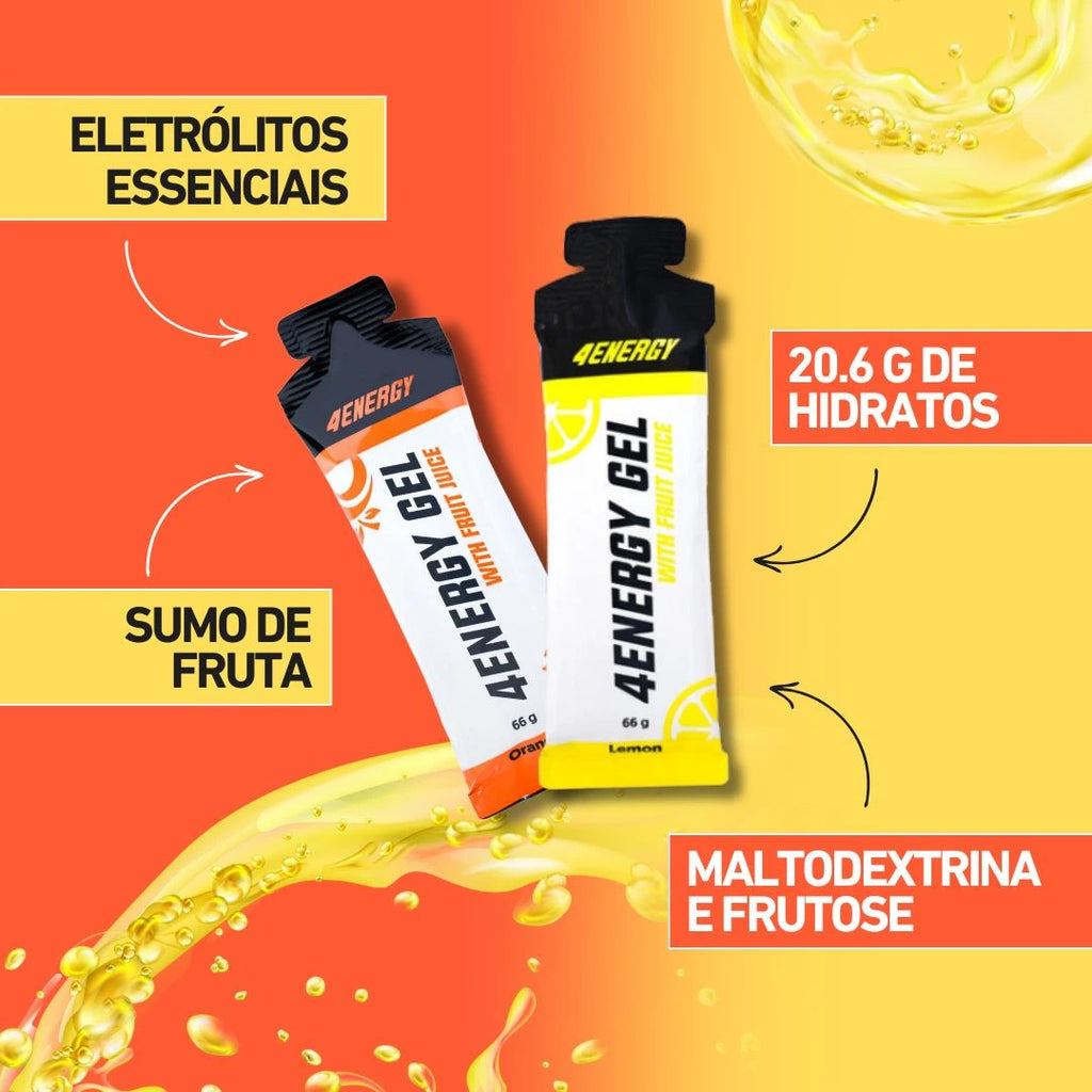 Apresentamos o novo gel 4Energy, que te vai surpreender pelo seu sabor fresco e natutal e pela textura líquida. O melhor de tudo é que, graças ao sumo de fruta adicionado, pode ser consumido diretamente, sem necessidade de qualquer água.