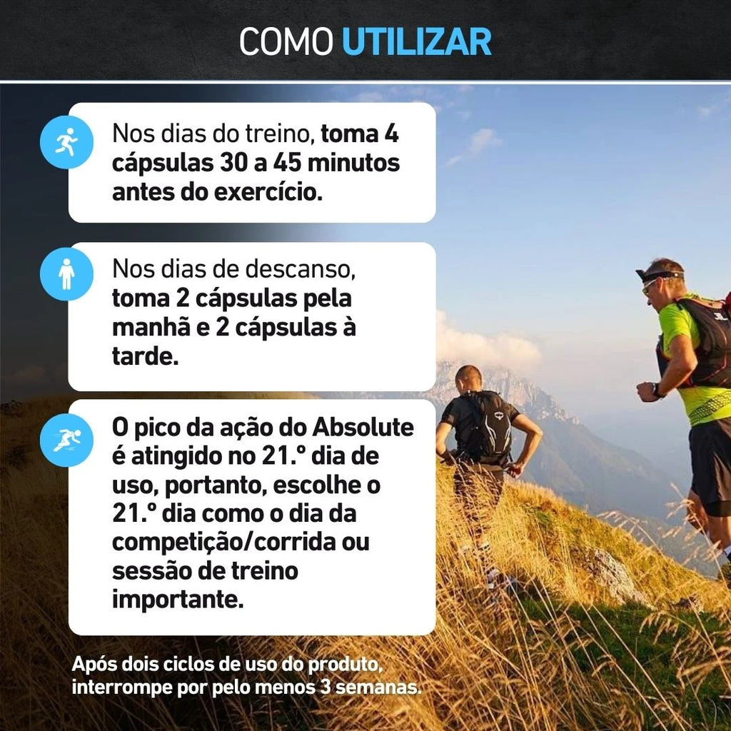O Absolute é um suplemento de alta performance, desenvolvido para aumentar o VO2 max, a força e a resistência, permitindo aos atletas de endurance treinar com maior intensidade, recuperar mais rapidamente e superar os seus próprios limites.