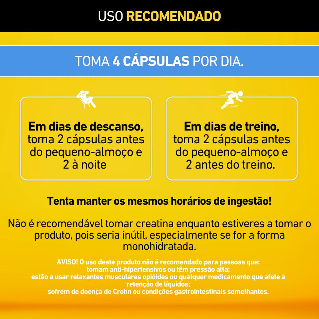 Em dias de treino, toma 2 cápsulas antes do pequeno-almoço e 2 antes do treino.