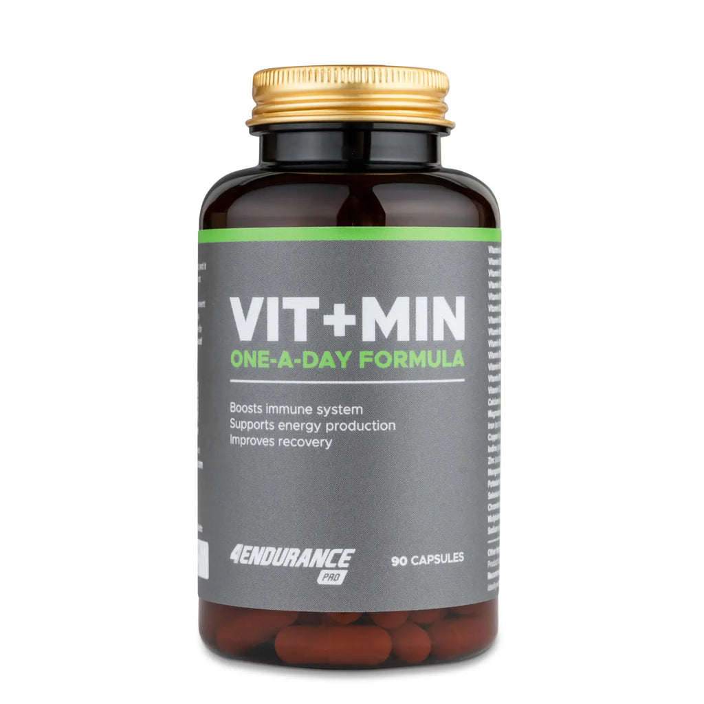 Vit+Min é uma fórmula de vitaminas e minerais concebida para atletas de endurance que pretendem obter a dose diária total de micronutrientes numa única cápsula.