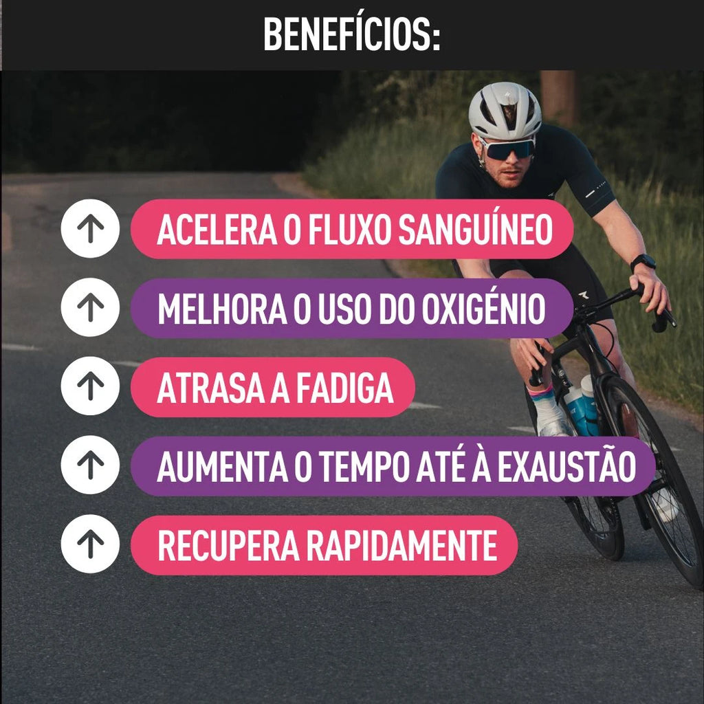 - Aumentando a eficiência do exercício: os nitratos reduzem o chamado custo de oxigénio do exercício. Isso significa que podes ter o mesmo desempenho com a mesma intensidade, mas usando menos oxigénio, melhorando a resistência e o desempenho.